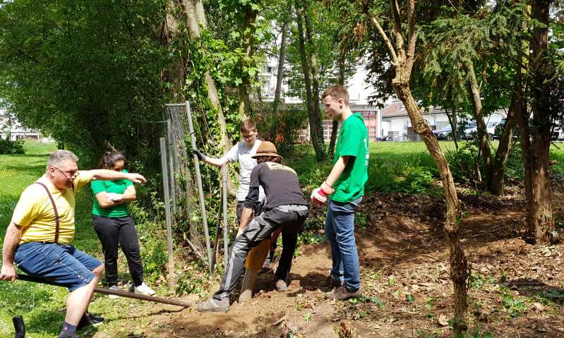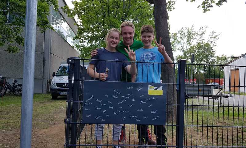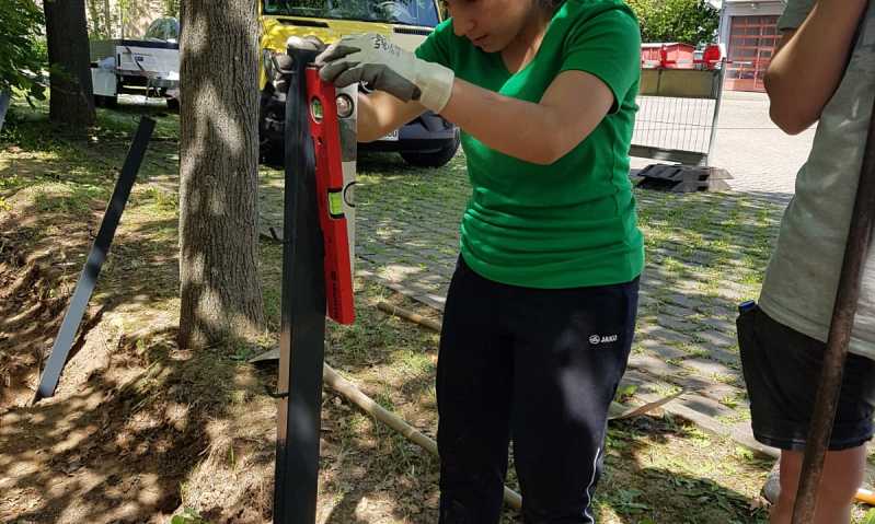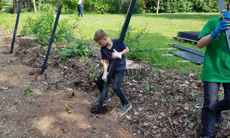 Etwa 40 Kinder und Jugendliche arbeiteten engagiert an diesem Projekt, so dass auch unsere Zaunbauprofis Rainer Münch und Joshua Schmitt sehr zufrieden waren.